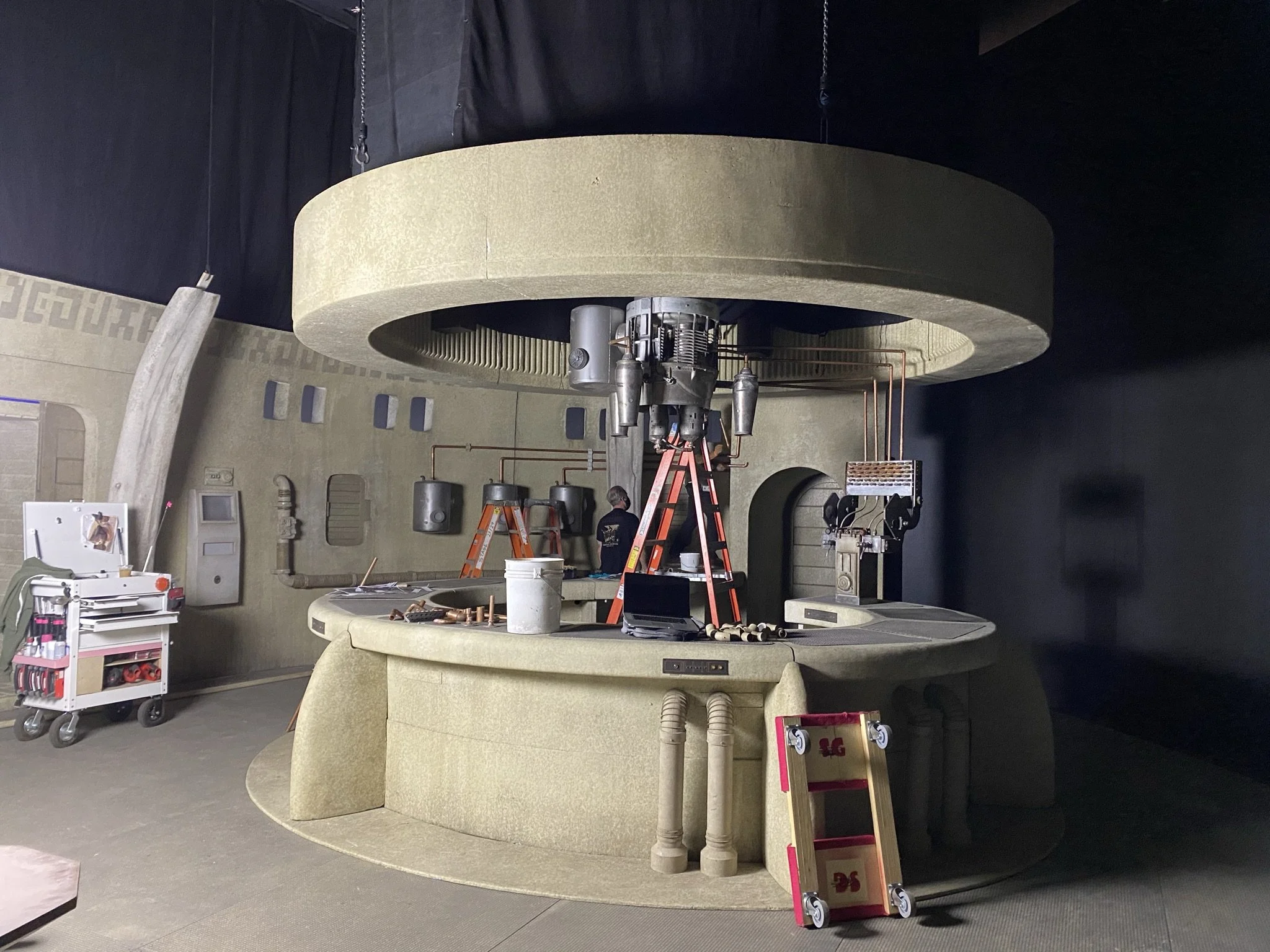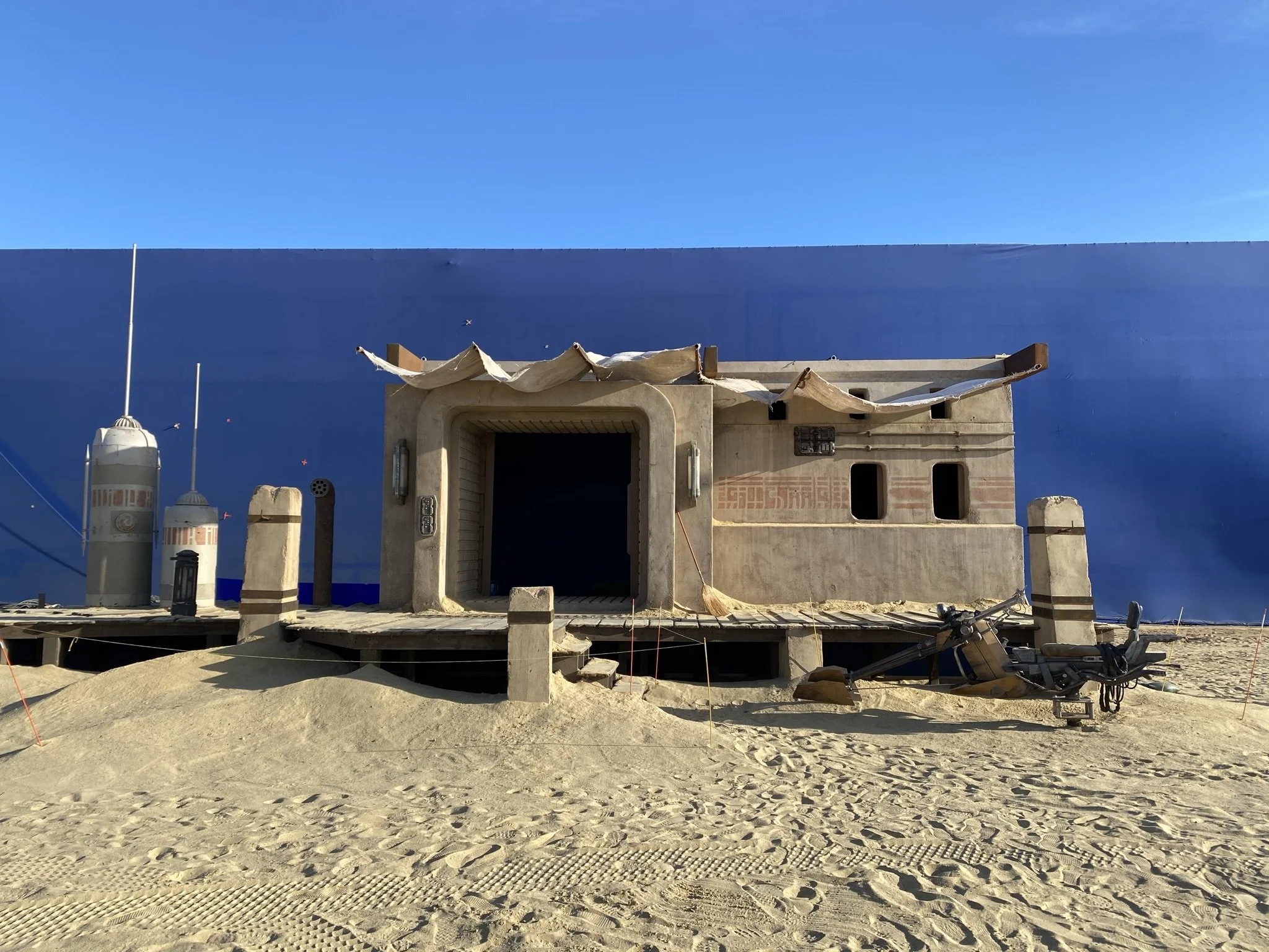 The Book of Boba Fett revisits the town formally known as Mos Pelgo from The Mandalorian season. Instead of rebuilding an entire western-town backlot set complete with Int./Ext. Saloon, we found efficiencies in fabrication costs and backlot time by building a partial interior in the volume with a partial exterior set on the backlot. Lidar scans from the original build served ILM's VAD and VFX teams for content creation for the volume and set extension on the backlot.